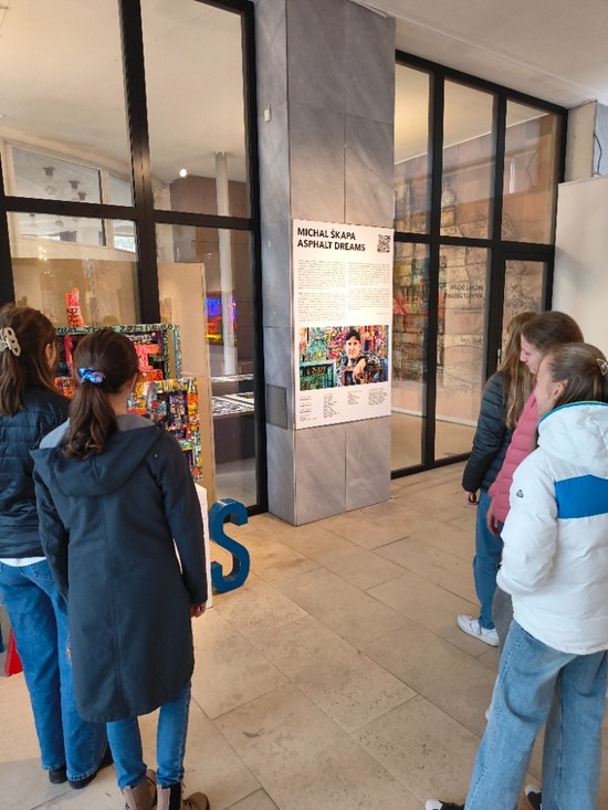 V úterý 4. listopadu zamířily v rámci předmětu Lidé a média obě skupiny kvartánů do výstavních prostor Galerie Ludvíka Kuby v Poděbradech. Žáci tam navnímali tvorbu Michala Škapy. Výtvarník v rámci aktuální kolekce Asphalt Dreams propojuje grafitti tvorbu s urbanistickými tématy. Kvarta se tak seznámila s tímtéž umělcem, který vystavoval již v celé řadě míst: Praha, Berlín, Varšava; ovšem i Kutná Hora, Šanghaj nebo Liberec. Tento podzim jeho díla poznaly tedy i Poděbrady, město, které má ostatně s grafitti scénou společného poměrně dost. Naši gympláci měli (mimo kochání se kreativní grafikou) též za úkol přemýšlet nad formami možné mediální propagace výstavy (na předmět LiM) a taktéž se seznámit s některými zásadami autorského práva (na předmět VKO). Vl. Zdeněk